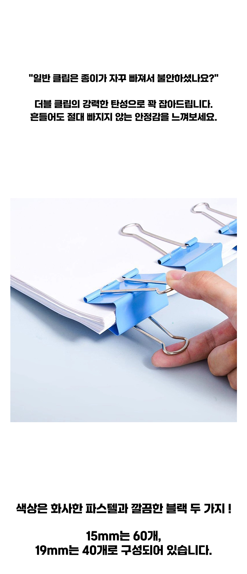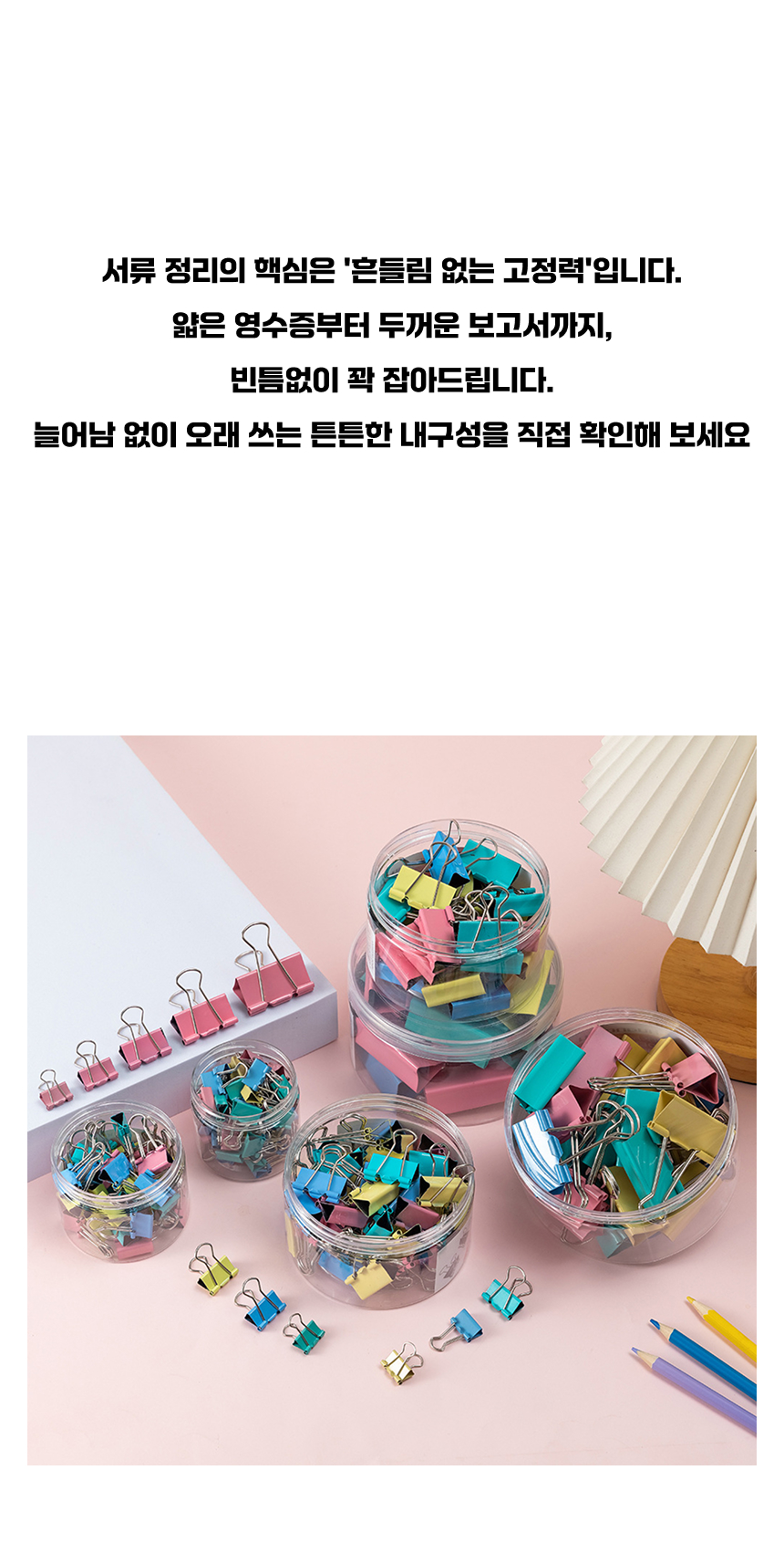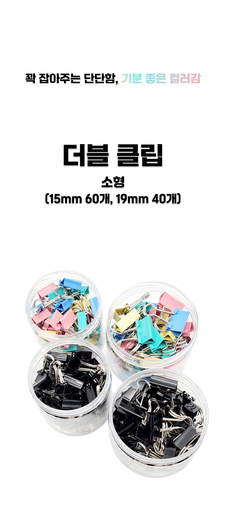 더블클립 문서 서류 집게 블랙 파스텔 컬러 (소형)
