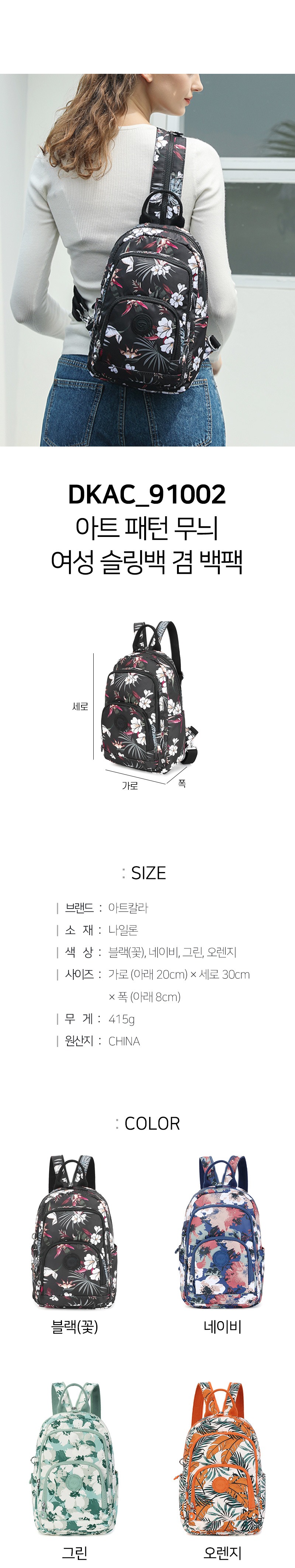 디케이에이 91002 슬링백 겸용 여성 백팩