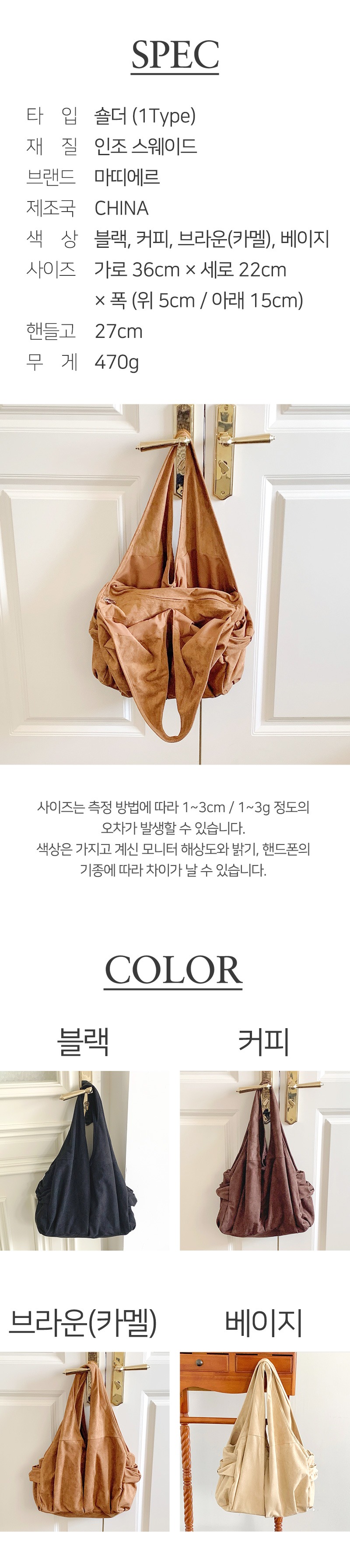 소재 인조 스웨이드+합성피혁 색상 상세정보 별도표기