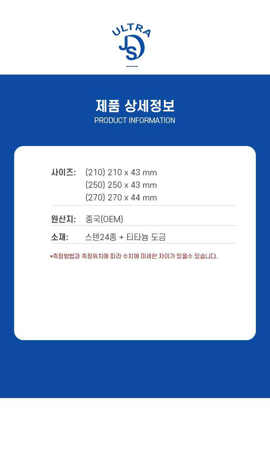 | 제품군 | 주방용품 | 품명 | 품명:24종 복진 티타늄 이중 복사라 210 |