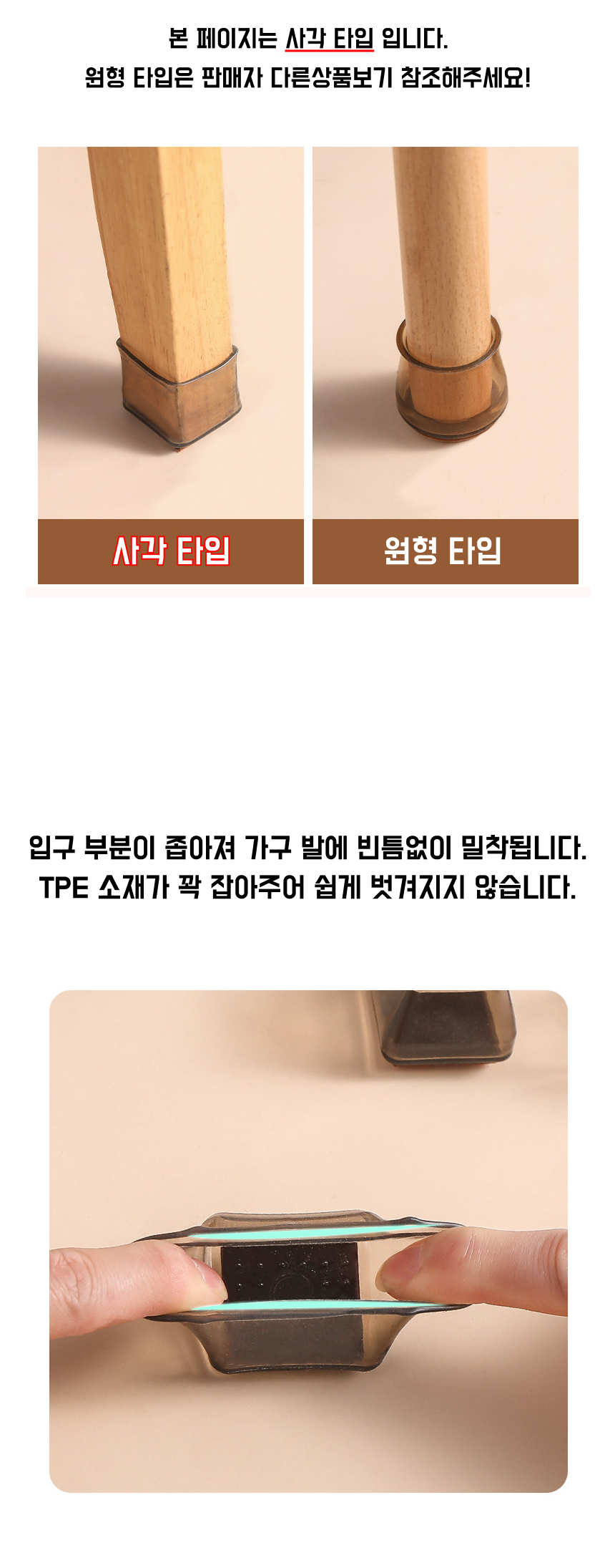 식탁 스툴 발 커버 테이블 의자 가구 다리 끌림방지 (사각 4p)