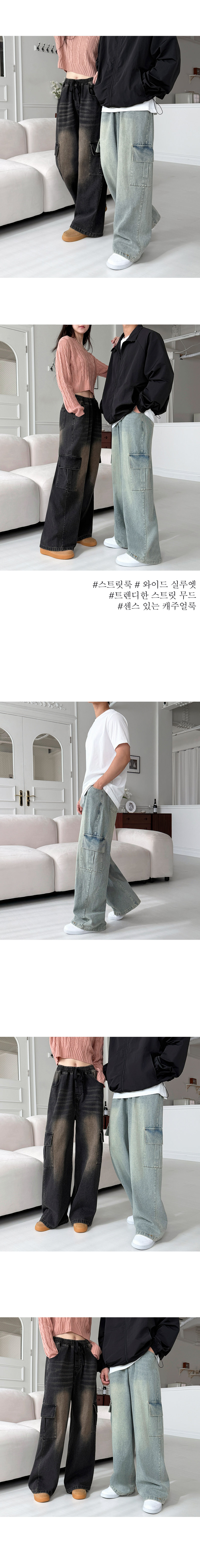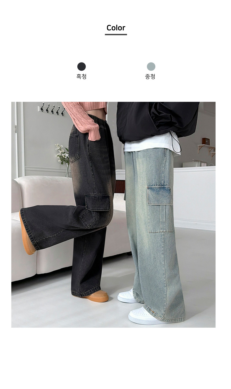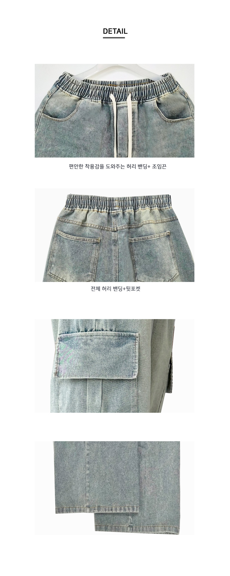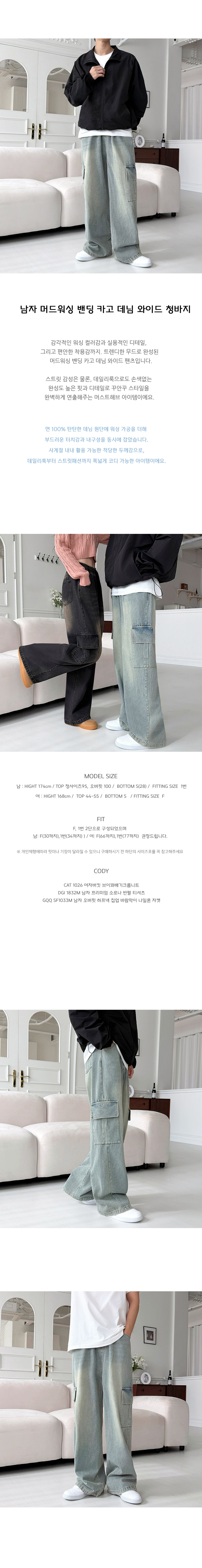 와이드 남자 데님 오버핏 밴딩 청바지 카고 남성 바지 팬츠