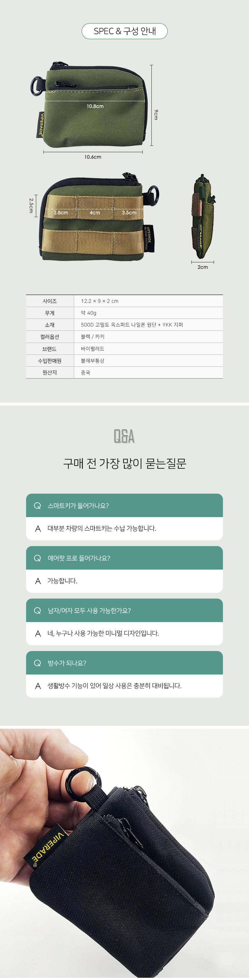 | 소재 | 500D 고밀도 옥스퍼드 나일론 원단 + YKK 지퍼 | 치수 | 12.2x9cm |