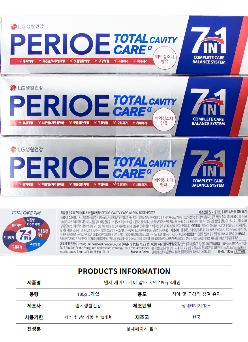엘지 케비티 케어 알파 치약 180g 3개입