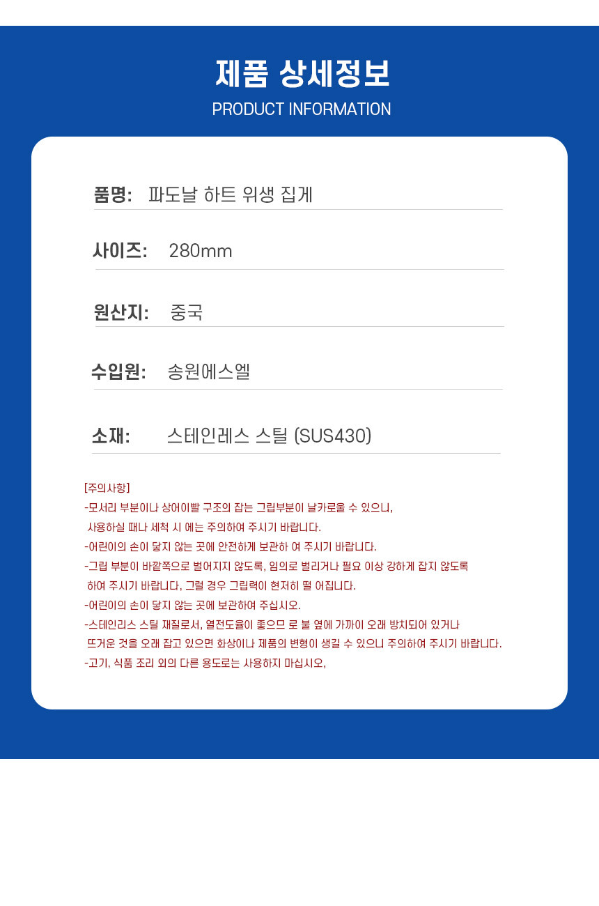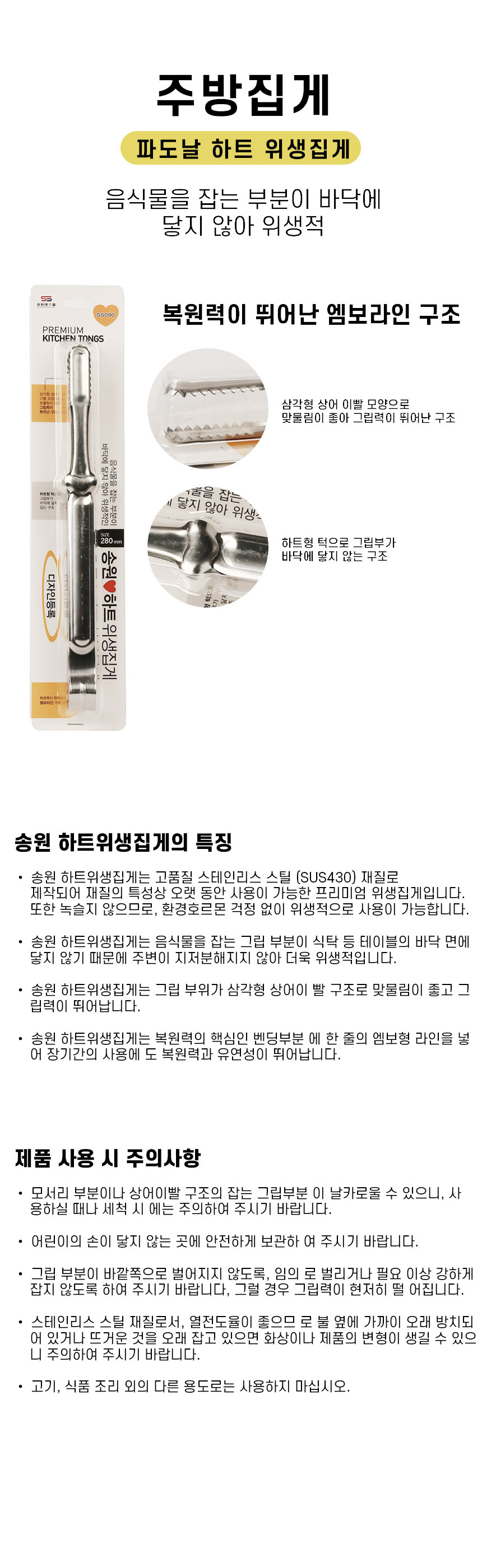 | 제품군 | 주방용품 | 품명 | 품명:스텐 파도날 하트 위생집게 |