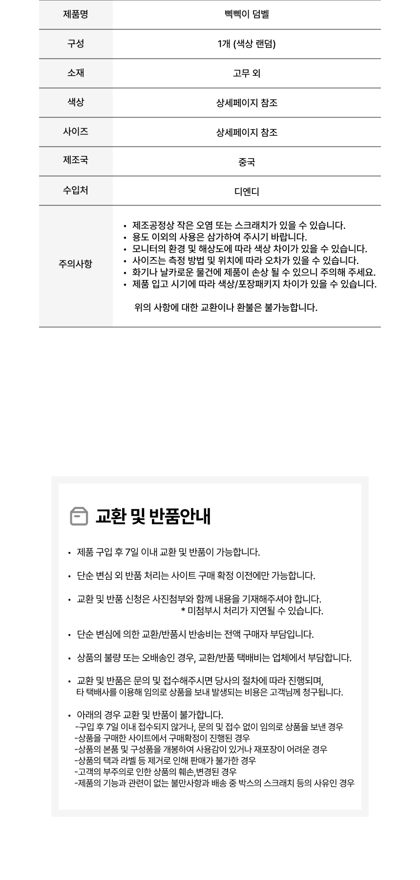 | 상품의 교환/반품/보증 조건 및 품질보증 기준 | |||
