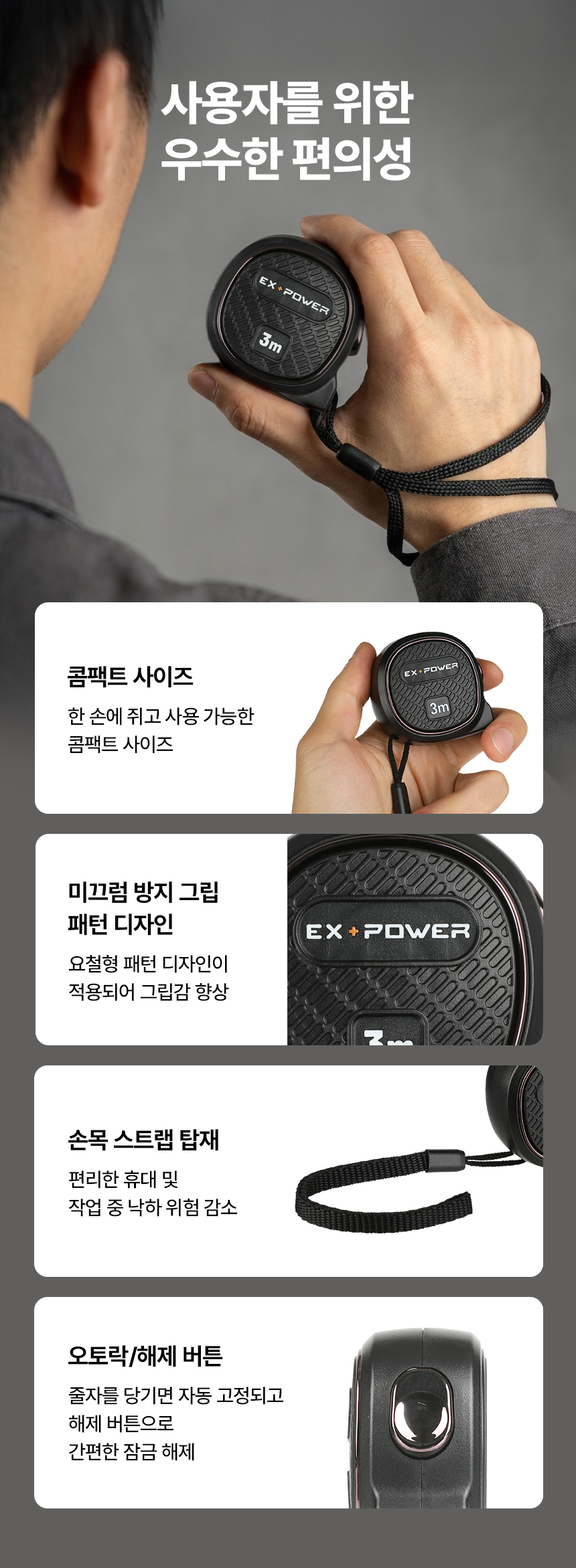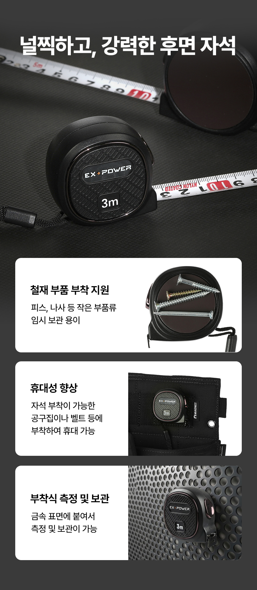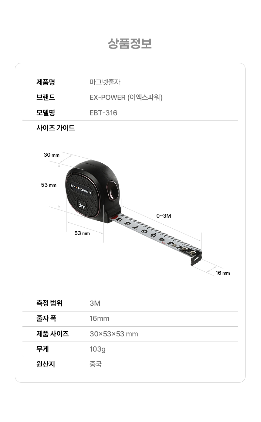 자동줄자 원터치 G그립 블랙 오토락 자석 3mX16 마그넷 줄자