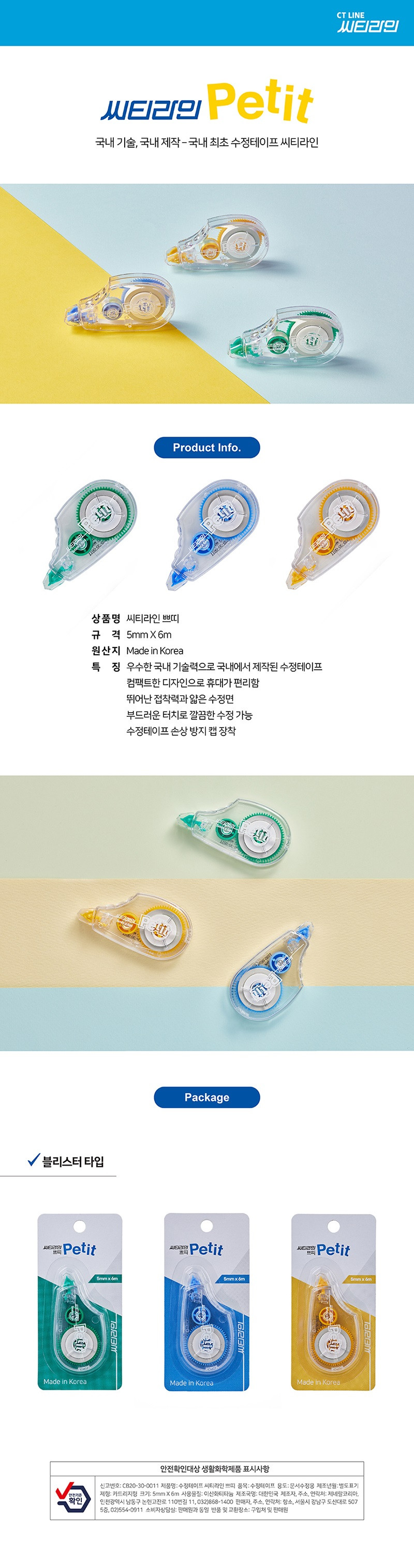 | 제품군 | 기타재화 | 품명 | 씨티라인 쁘띠 수정테이프 블리스터타입 화이트 / 5MMx6M (1개입) |
