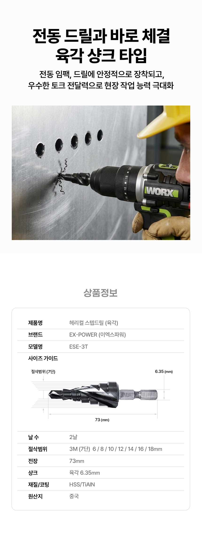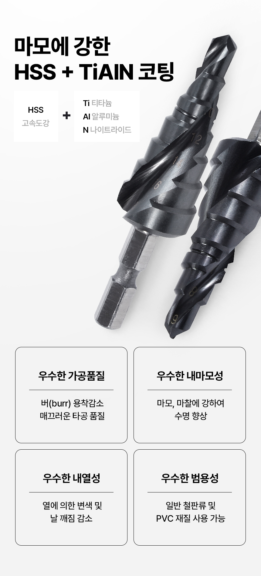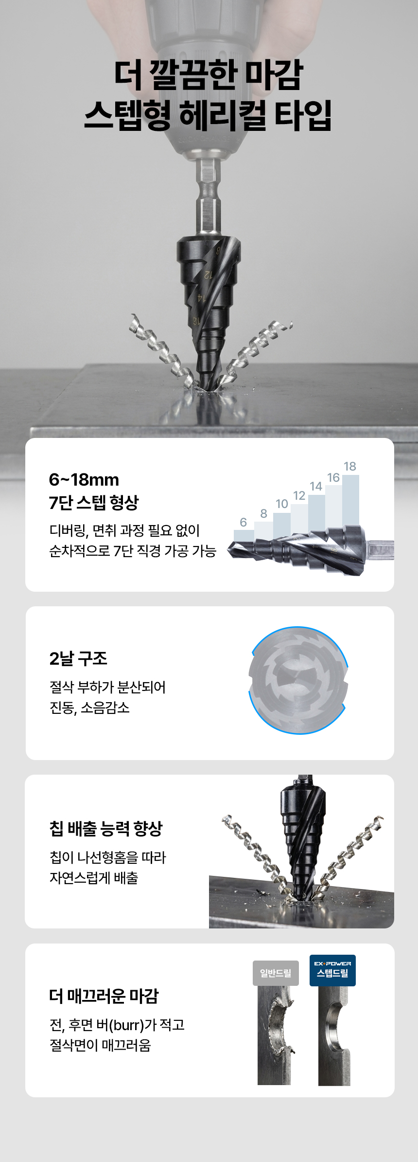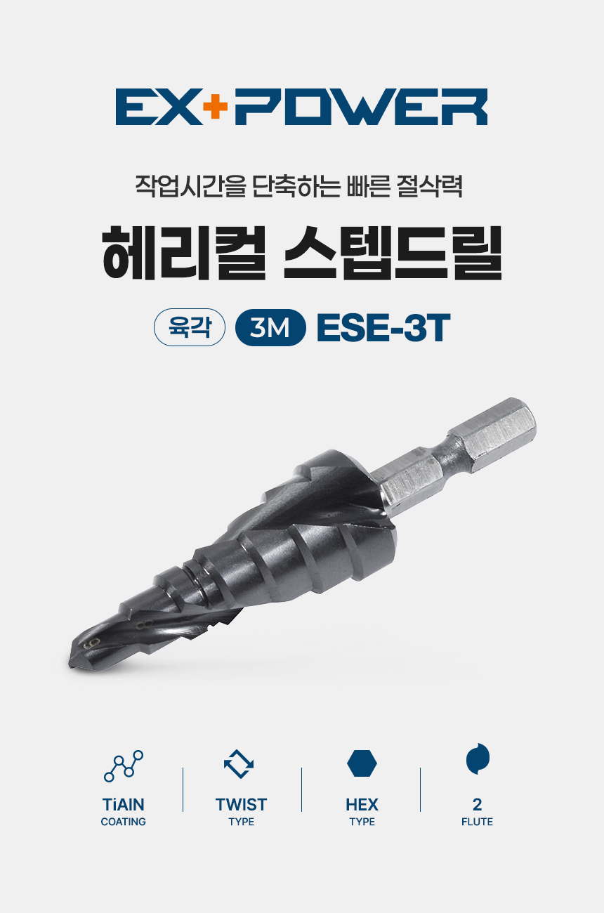 탭기리 홀가공 홀쏘 헤리컬 2날 7단 3M 6-18mm 스텝드릴