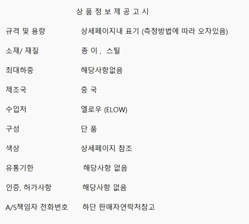제조자(사) 상세정보 별도표기 A/S 책임자 또는 소비자 상담 관련 전화번호 상세정보 별도표기