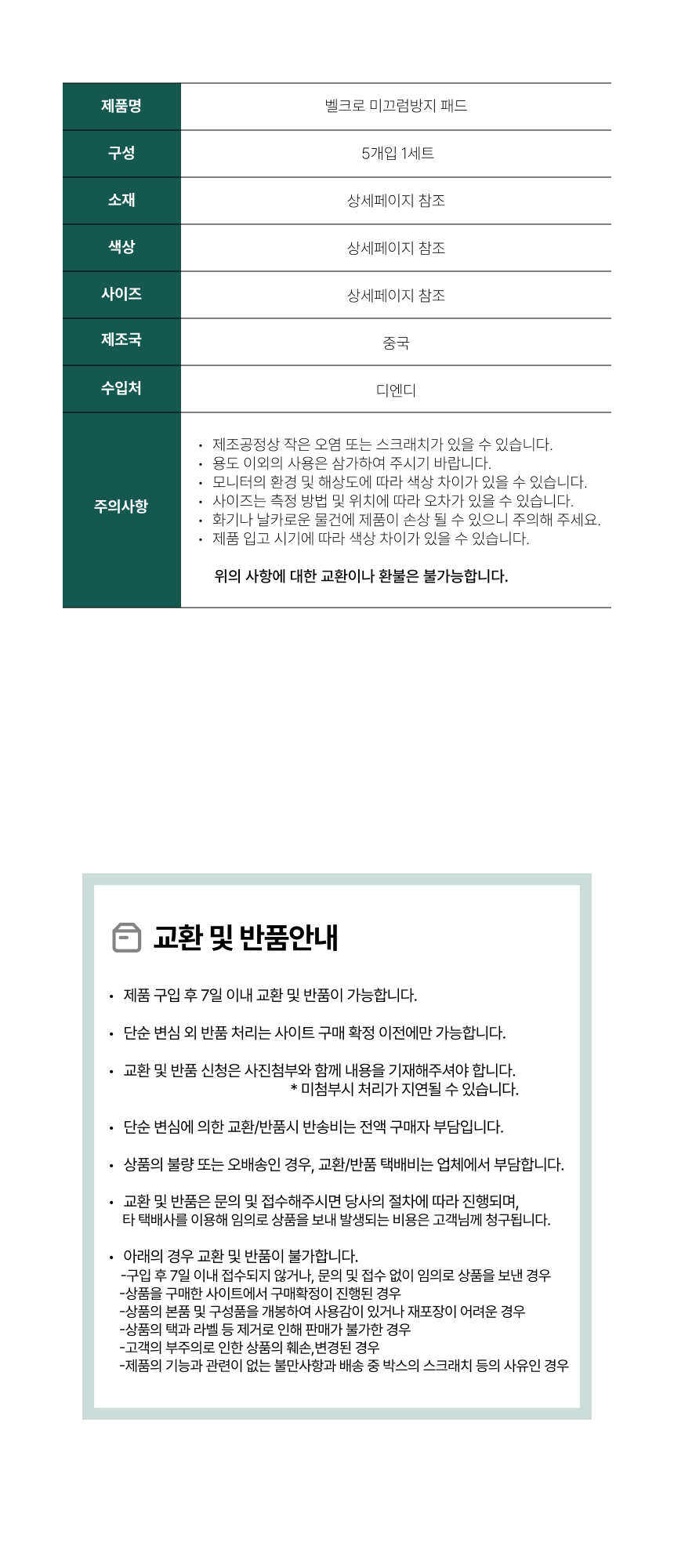| 상품의 교환/반품/보증 조건 및 품질보증 기준 | |||