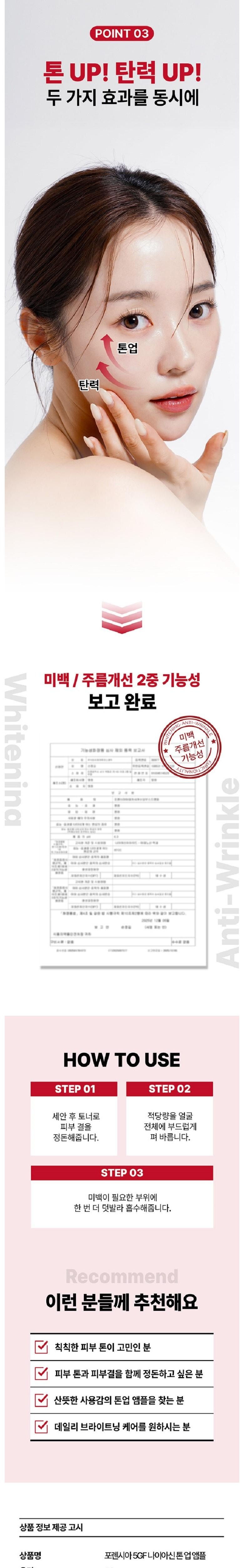 | 「화장품법」에 따른 기능성 화장품(미백, 주름개선, 자외선 차단제품 등)의 경우 | 미백/주름개선/2중기능성화장품 | 사용할 때의 주의사항 | 상세정보 별도표기 |