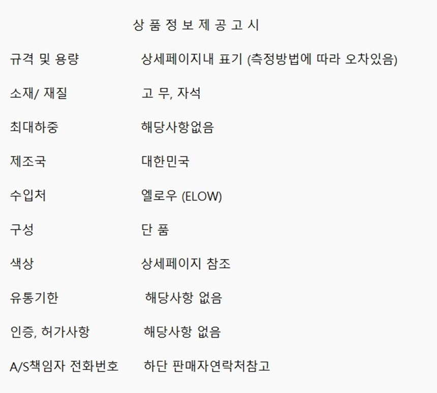 제조자(사) 상세정보 별도표기 A/S 책임자 또는 소비자 상담 관련 전화번호 상세정보 별도표기