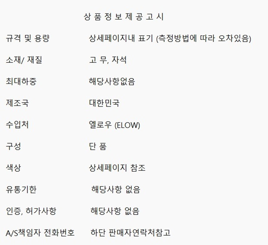 제조자(사) 상세정보 별도표기 A/S 책임자 또는 소비자 상담 관련 전화번호 상세정보 별도표기