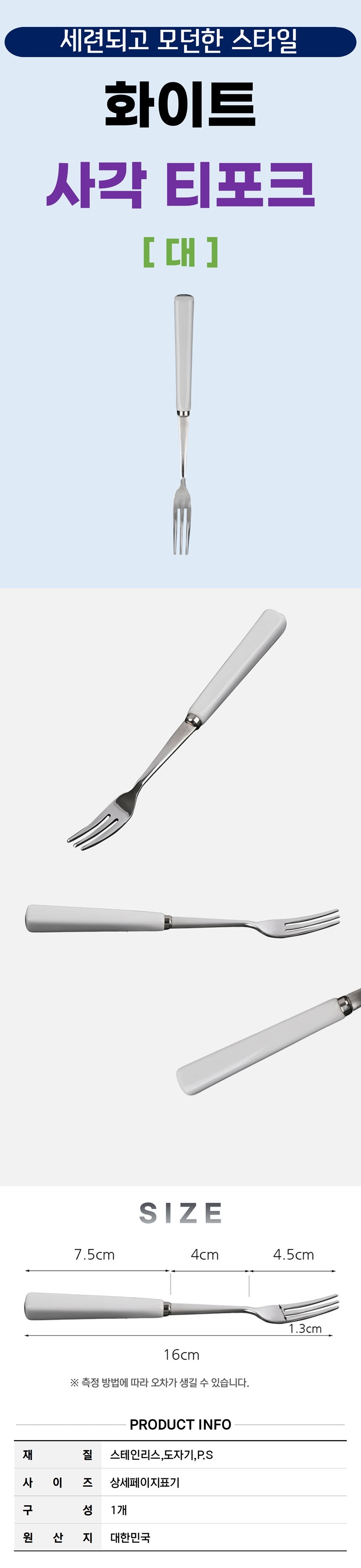 모던한 화이트 도자기핸들 스텐 티포크-소 케이크 과일 찍어 먹는 포크