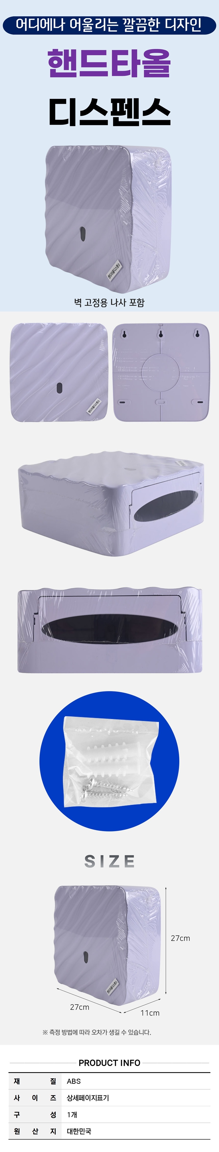 벽 고정형 튼튼한 ABS 핸드타올 케이스 업소용 화장지 걸이