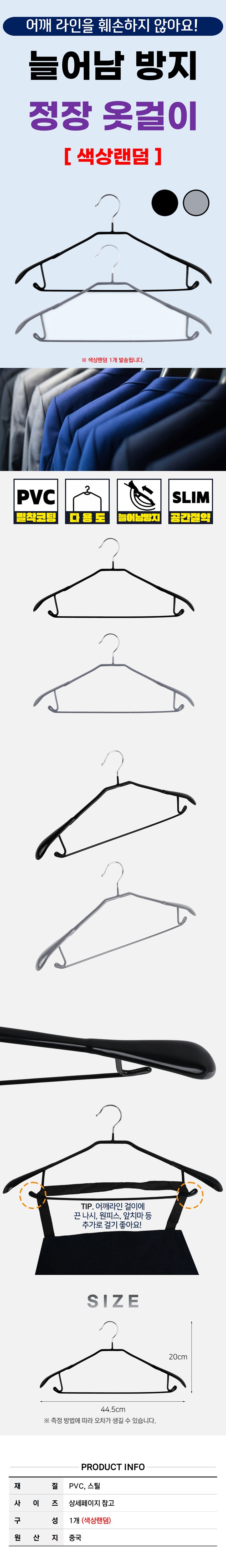 어깨 뿔 방지 정장 PVC코팅 옷걸이 (색상랜덤) 늘어남 없는 니트 걸이 고리회전형