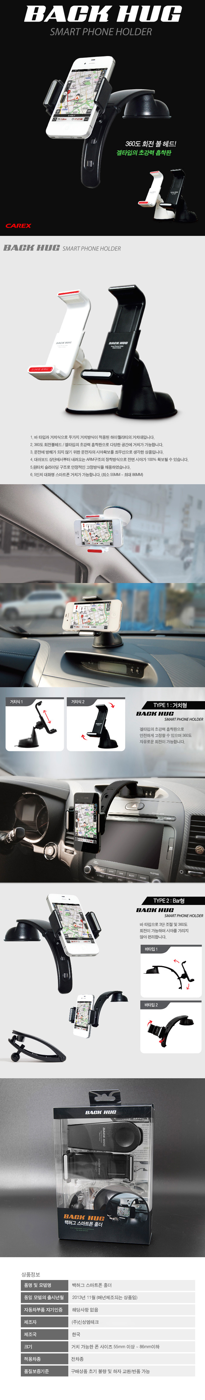 백허그 차량 핸드폰거치대 자동차 스마트폰 홀더 휴대폰 거치대 흡착형