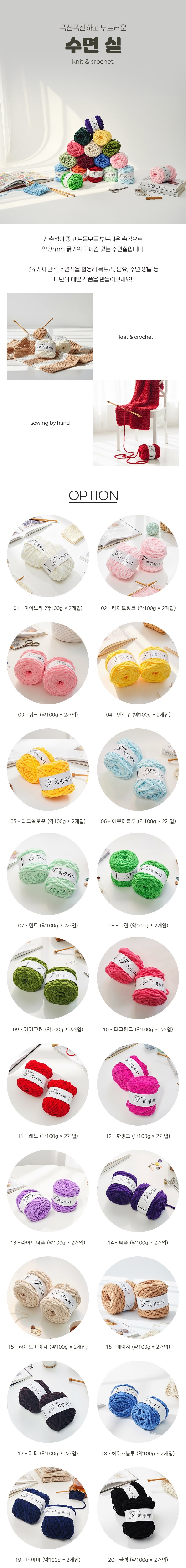 뜨개질공예 폭신하고 부드러운 8mm 도톰 수면 실 34종