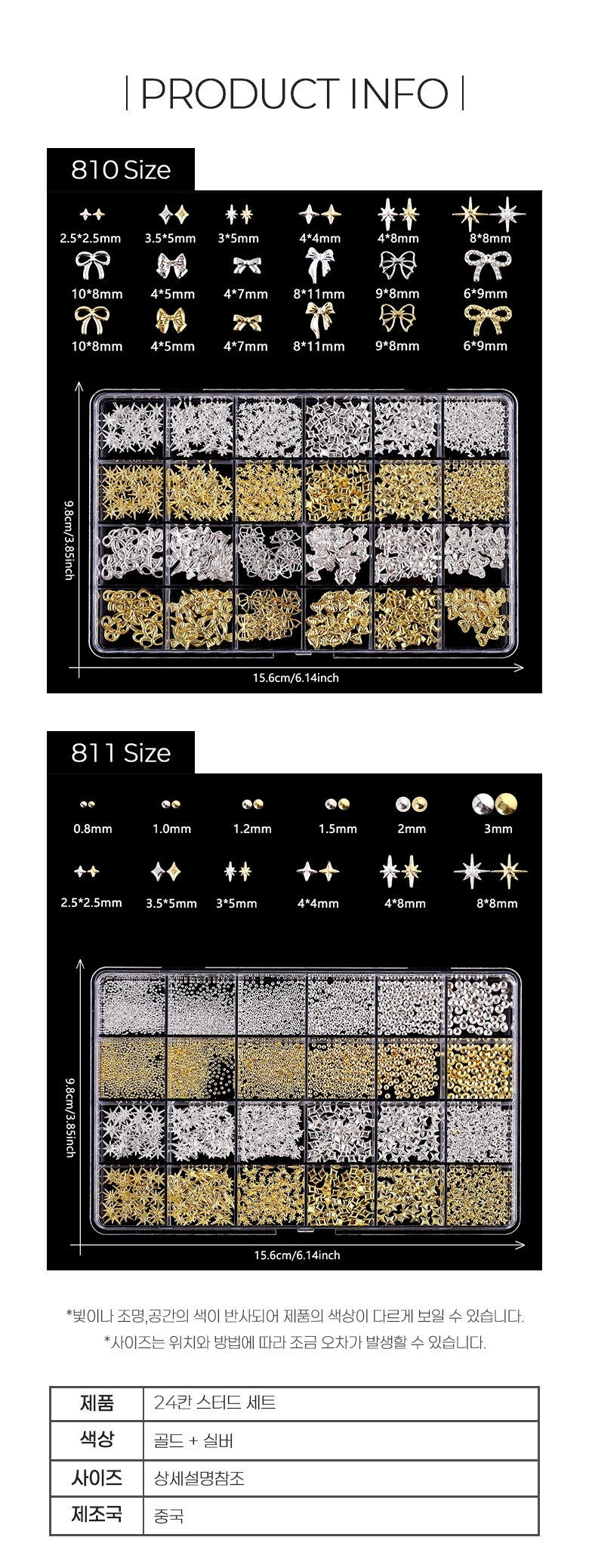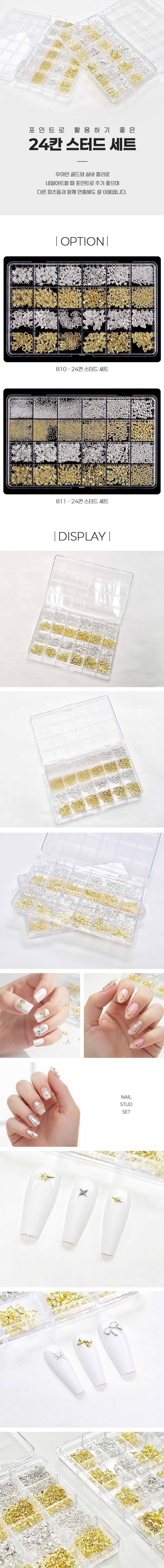 네일아트 포인트 파츠 메탈찡 24 네일스터드 세트 2종