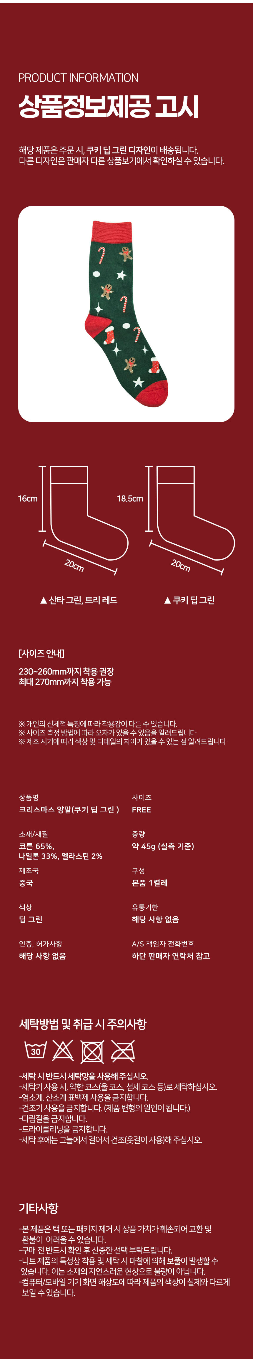 크리스마스 양말 롱타입(쿠키 딥 그린) G
