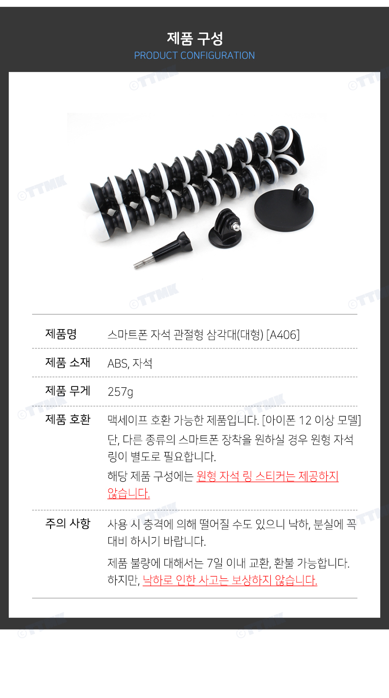 | 제조자(사) | TTMK | A/S 책임자 또는 소비자 상담 관련 전화번호 | 010-5196-2737 |
