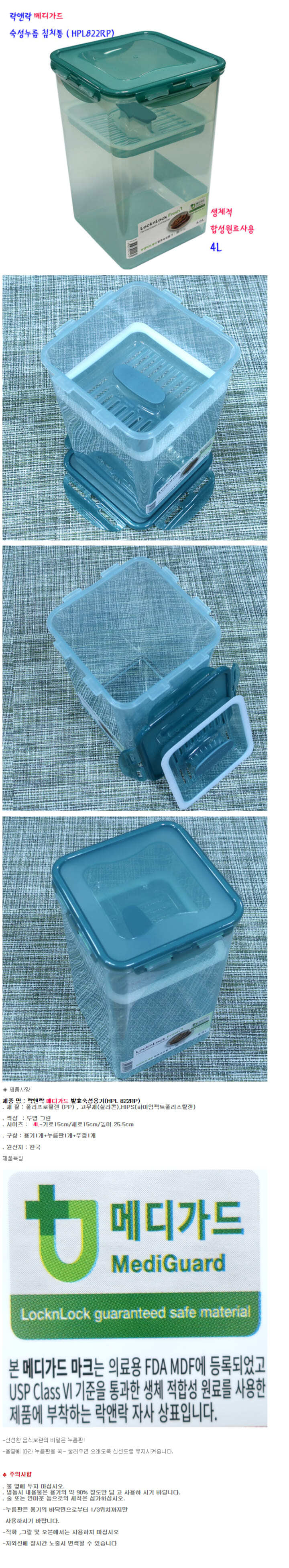 락앤락 김치통 밀폐용기 냉장고 누름 김치 반찬통 용기 4L 그린 1P