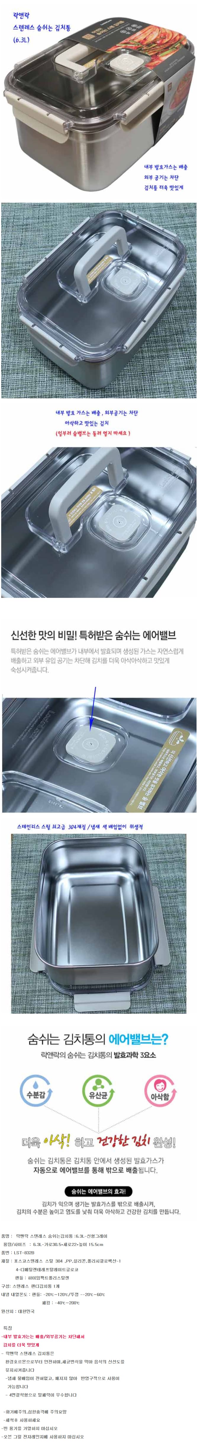 락앤락 스텐 김치통 밀폐용기 냉장고 김치 반찬통 용기 6.3L