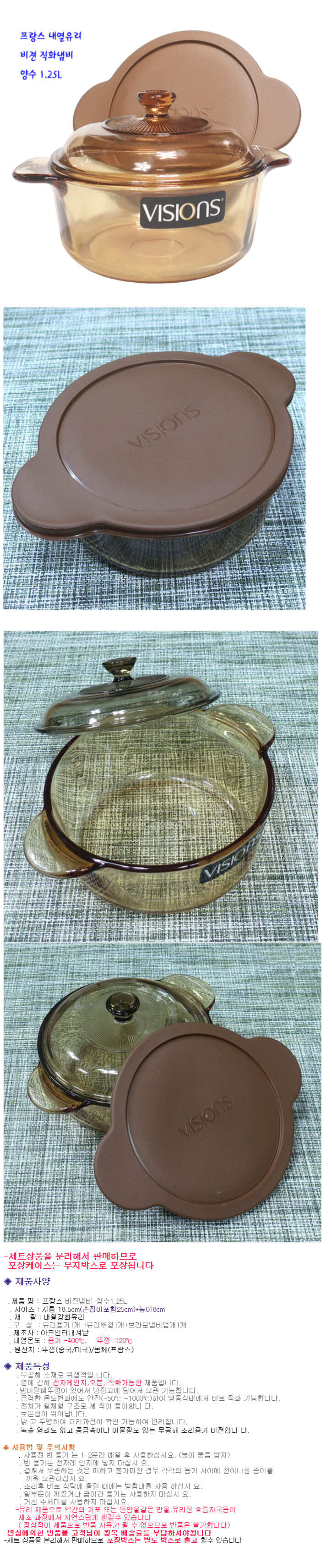 비젼 유리 냄비 전자레인지 오븐 직화 내열 강화유리 양수 냄비 1.25L