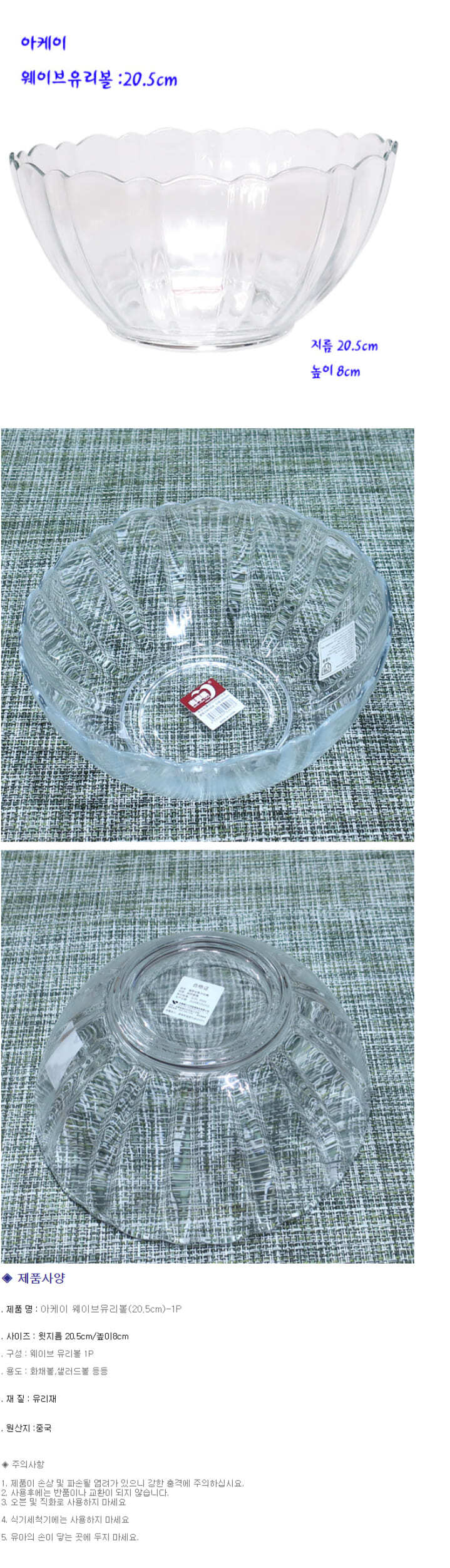 아케이 샐러드볼 화채볼 유리 믹싱볼 유리볼 20.5cm