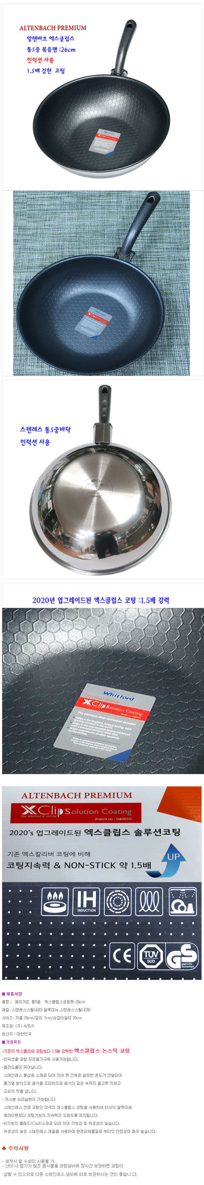 알텐바흐 인덕션 궁중팬 볶음팬 통5중 웍 중화요리 IH 프라이팬 26cm