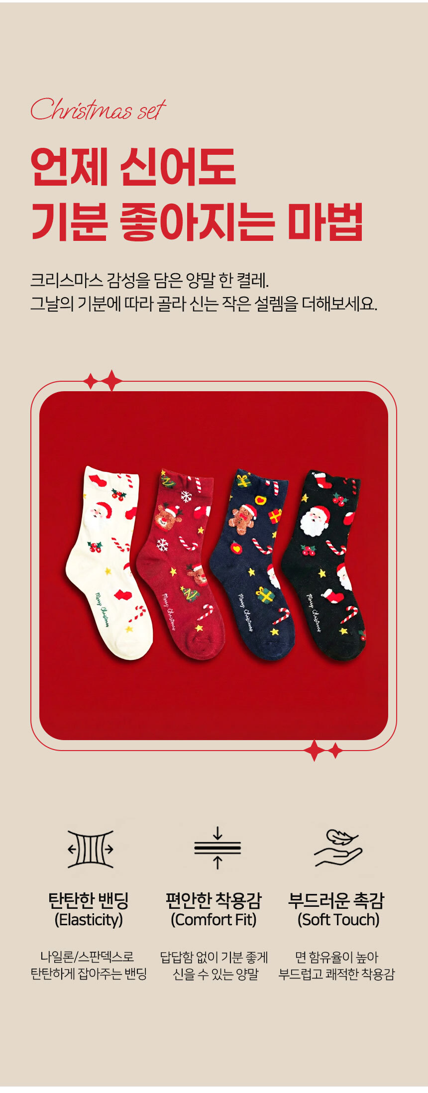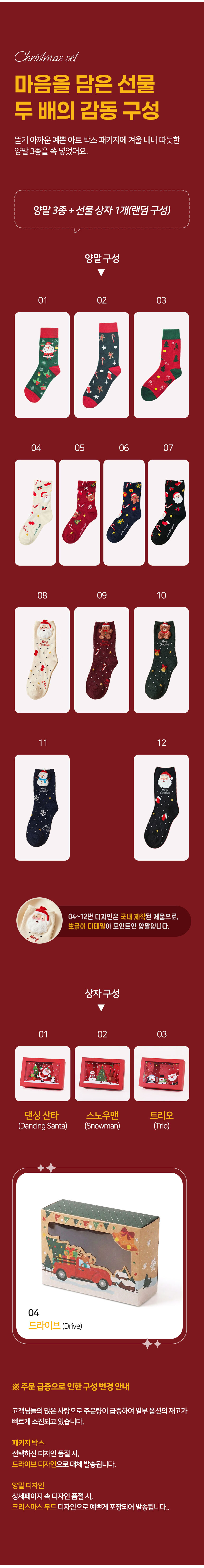 크리스마스 양말 3종 선물 포장 상자 세트 (랜덤구성) G