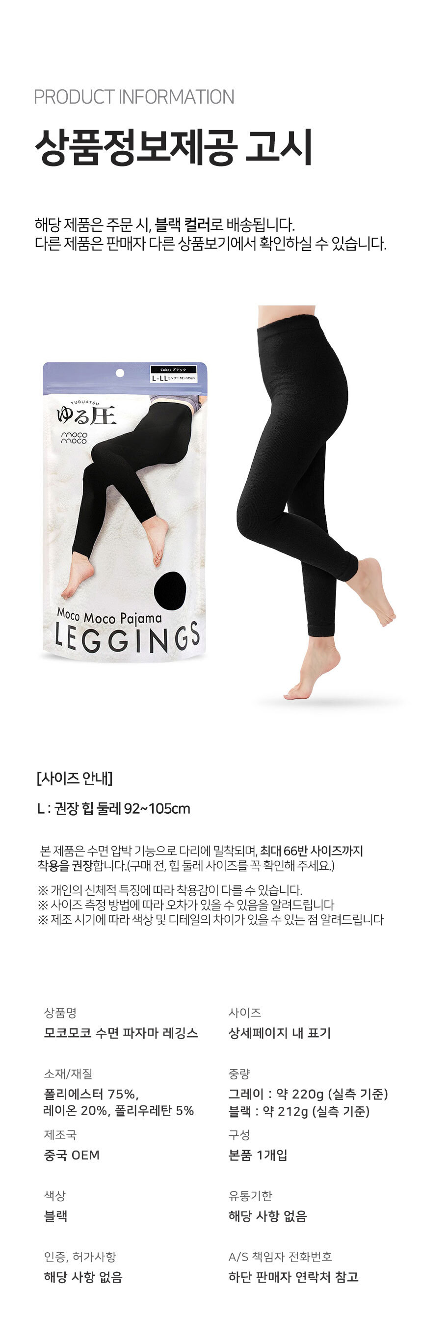 일본 직수입 모코모코 수면 파자마 레깅스(블랙) G