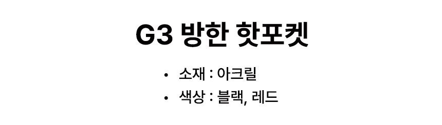 | 제품군 | 스포츠용품 | 품명 | G3 방한 핫포켓 |