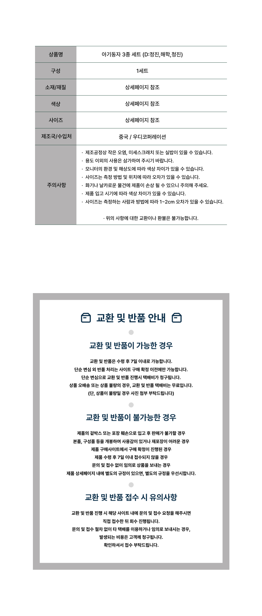| 상품의 교환/반품/보증 조건 및 품질보증 기준 | |||