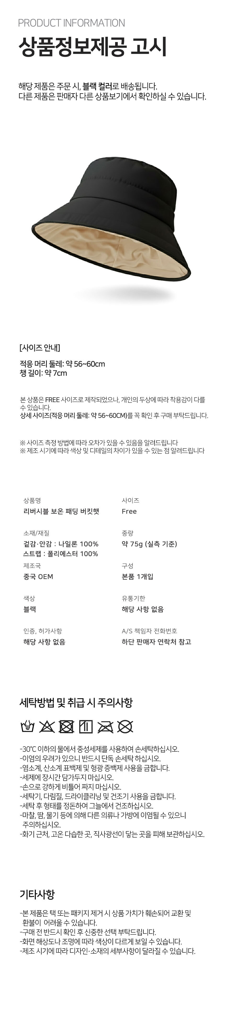 | 소재 | 상세페이지 참고 | 치수 | 상세페이지 참고 |