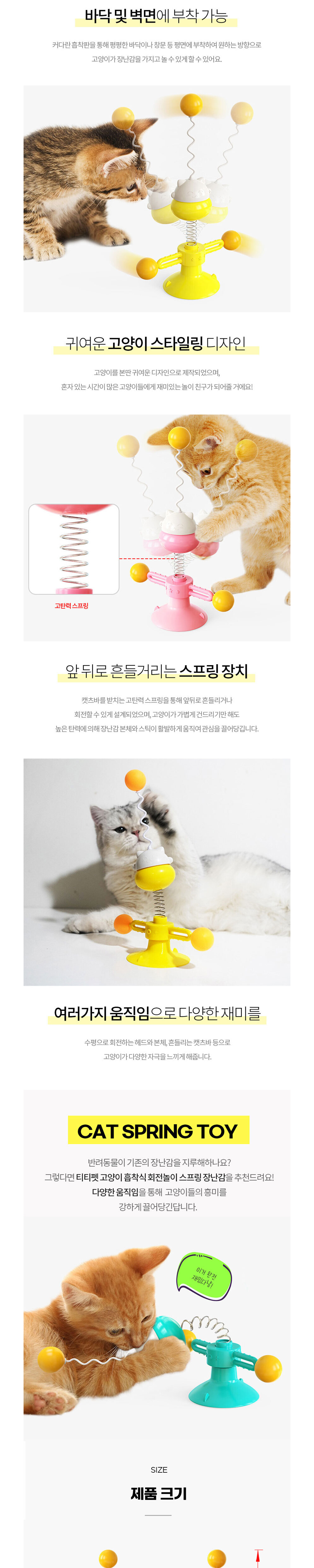 고양이 흡착식 회전놀이 스프링장난감(핑크)