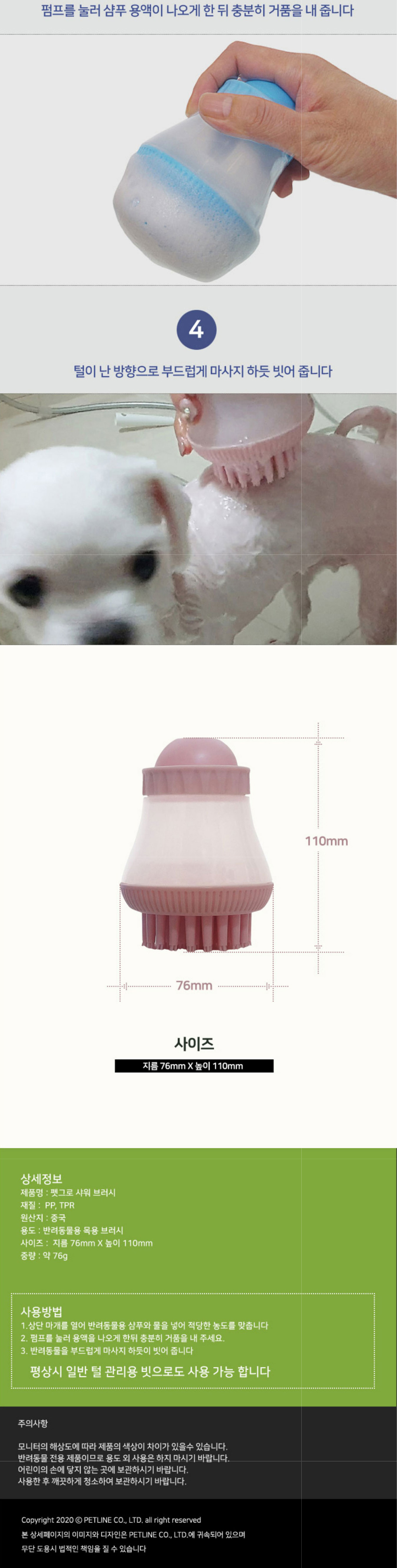 펫그로 샤워 브러쉬(핑크)