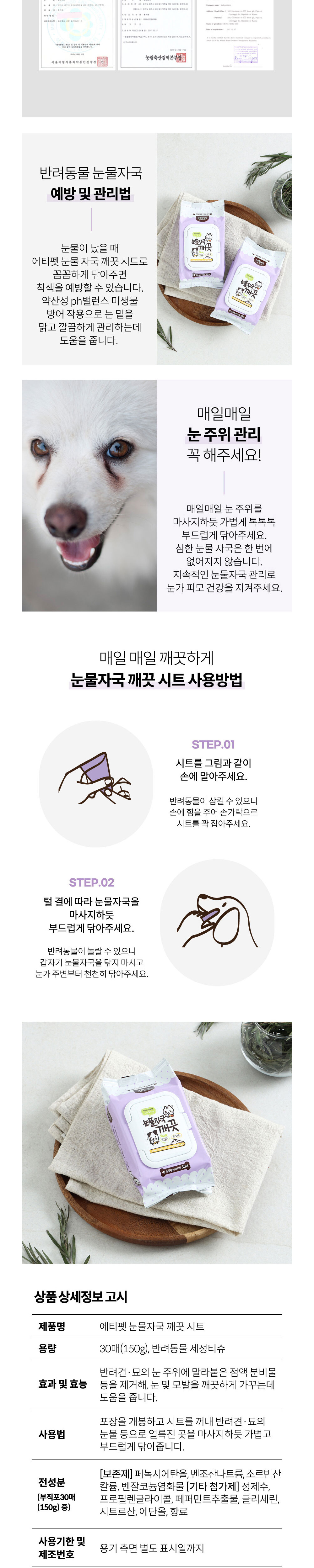 에티펫 눈물자국깨끗 물티슈30매 캡형