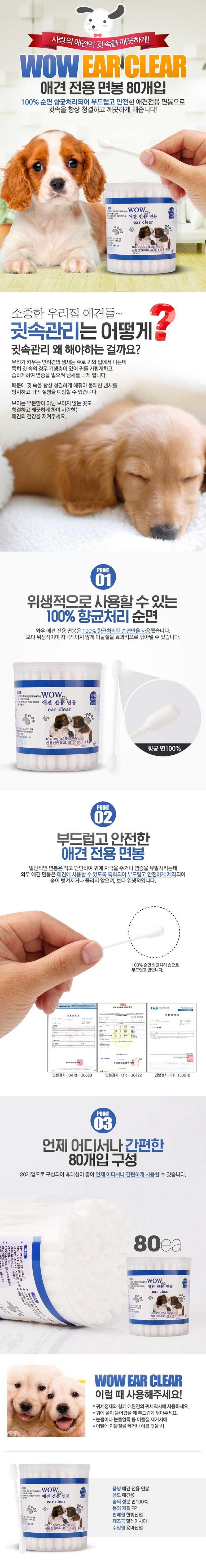 와우 애견전용면봉 80개입