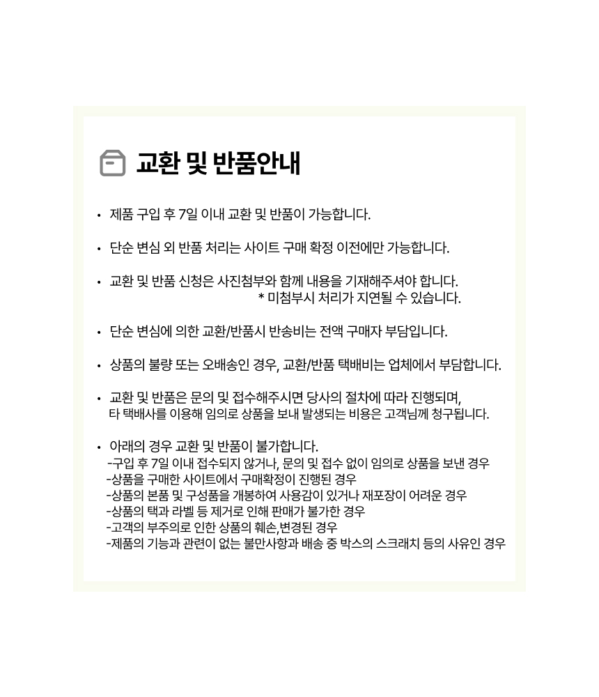 | 상품의 교환/반품/보증 조건 및 품질보증 기준 | |||