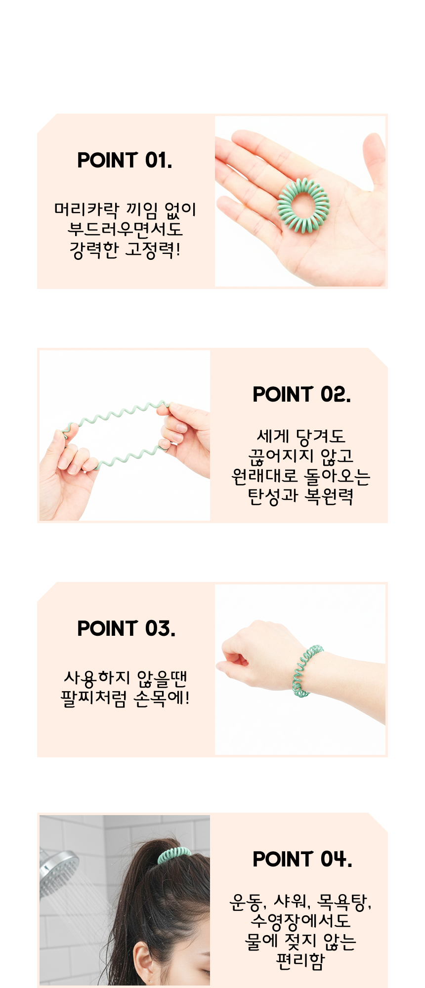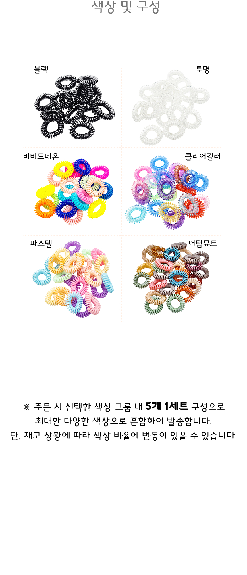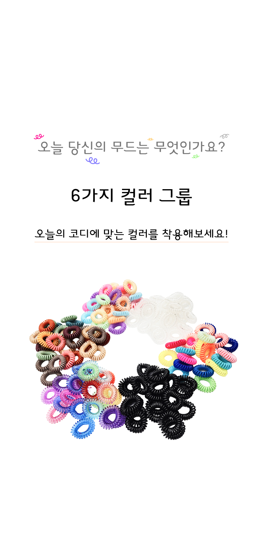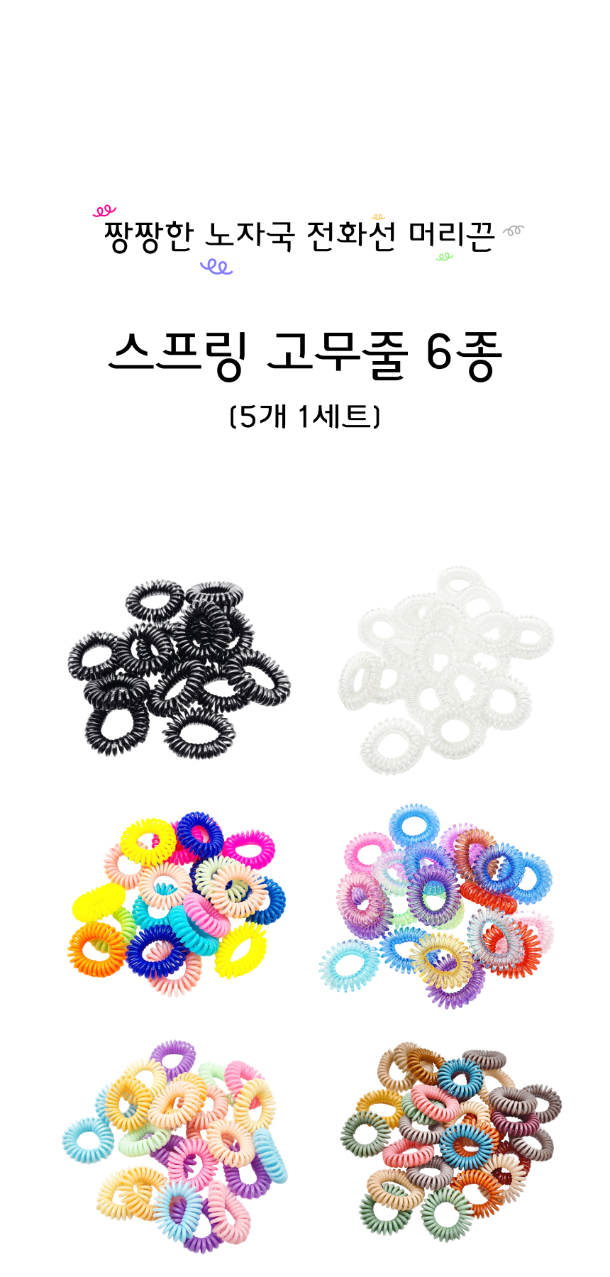 스프링 머리 고무줄 전화선 머리끈 6종 5P