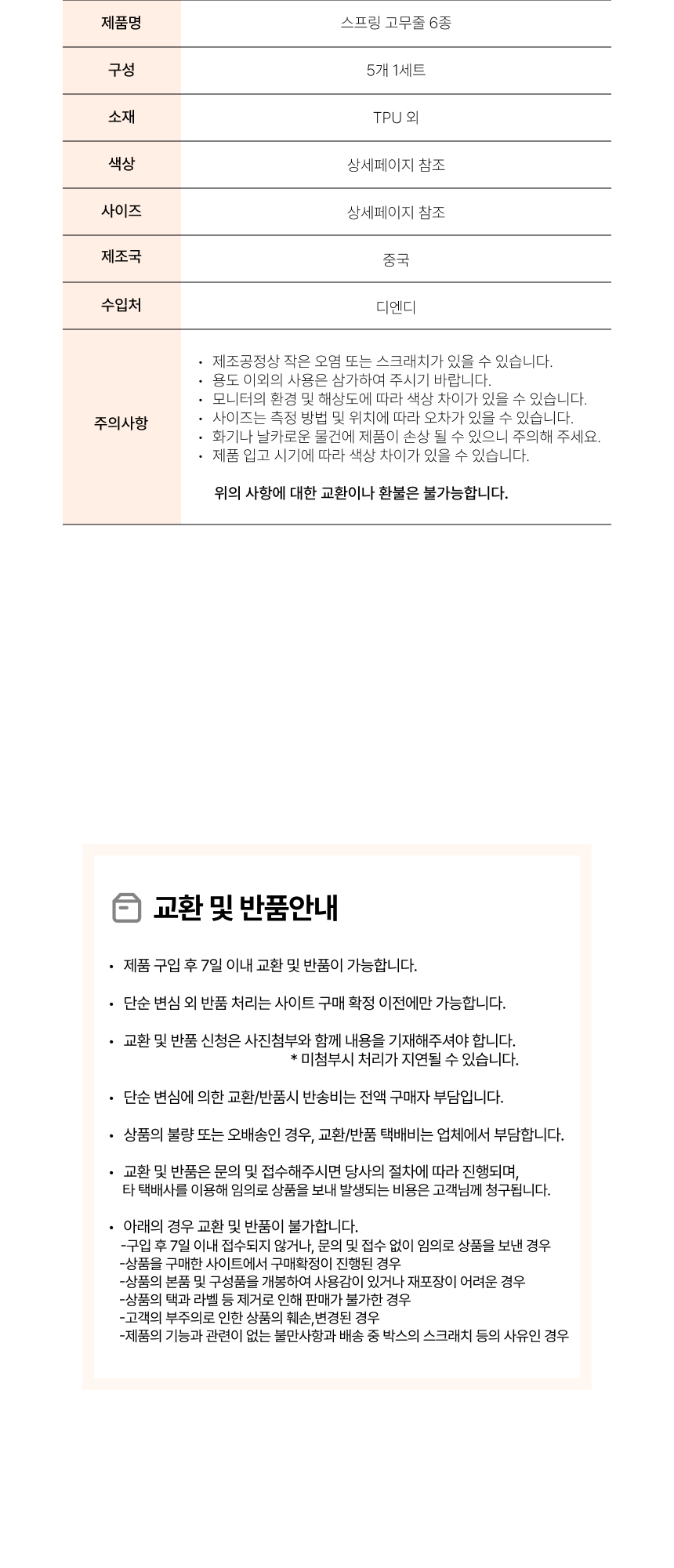 ※ 오배송, 불량, 파손 이외의 사유 및 색상 차이에 의한 반품/교환은 변심에 해당됩니다.