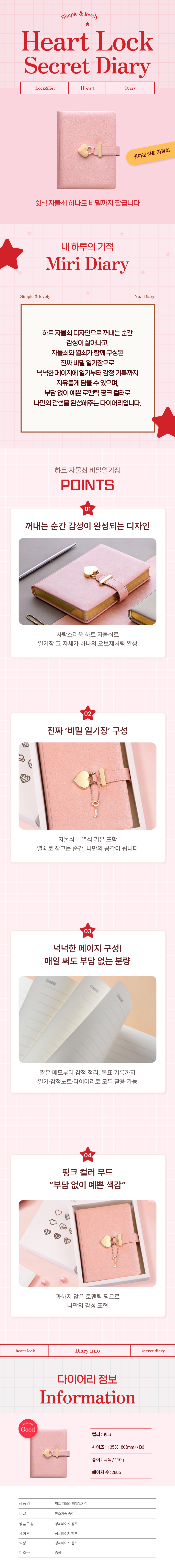 로즈핑크 비밀일기장 자물쇠 다어이리 태교 만년 감사일기 플래너 노트 수첩