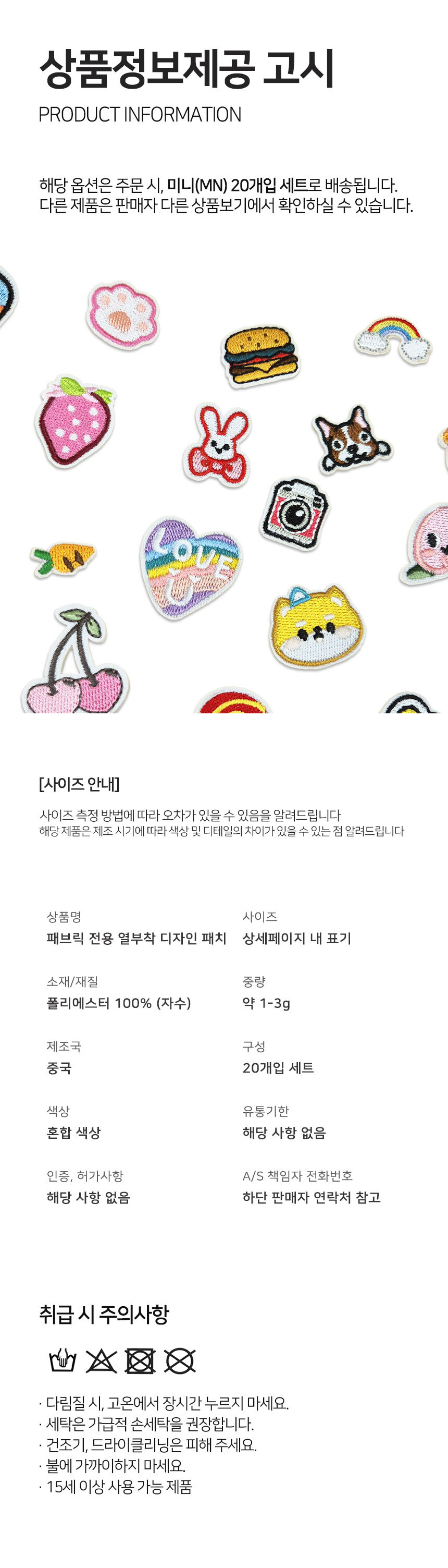 패브릭전용 열부착패치 미니(MN) 20개세트 G