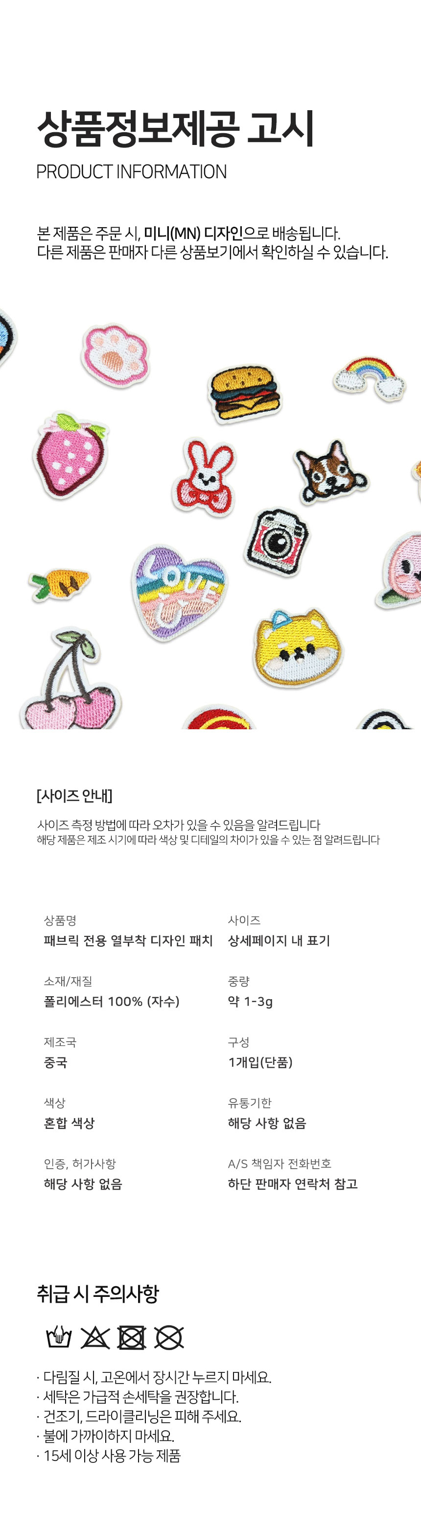 | 제품군 | 기타재화 | 품명 | 열부착 자수 패치 미니 |