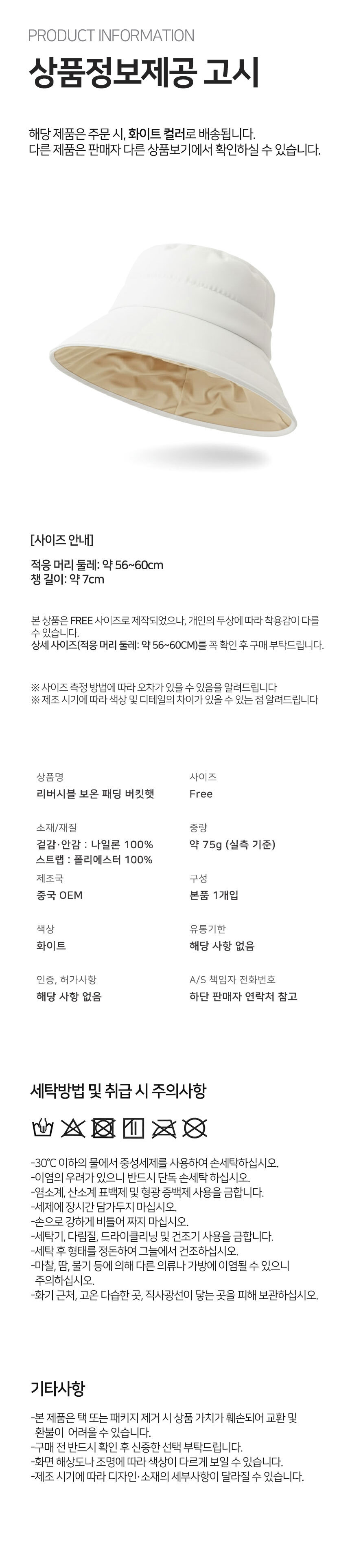 | 소재 | 상세페이지 참고 | 치수 | 상세페이지 참고 |