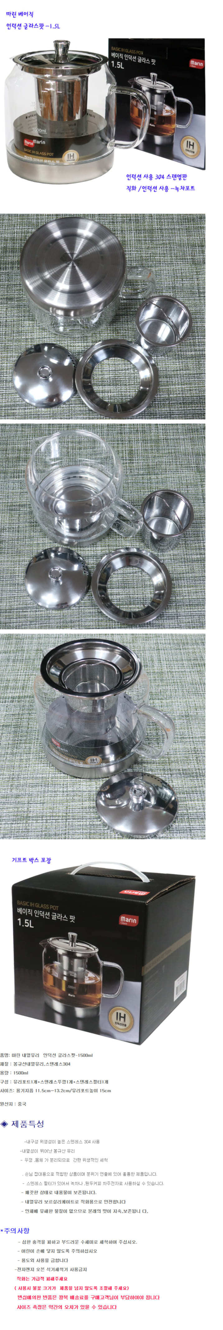 마린 인덕션 티포트 보리차 녹차 차포트 주전자 내열유리 티팟 1.5L