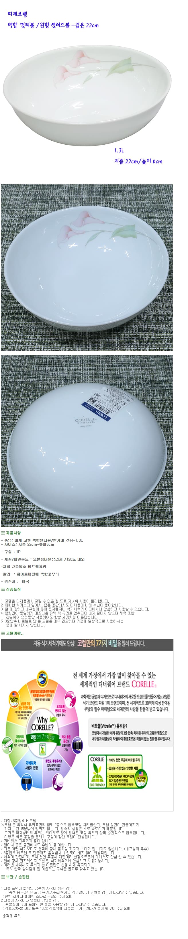 코렐 대접 샐러드볼 백합 라면 냉면 면기 깊은 멀티볼 22cm