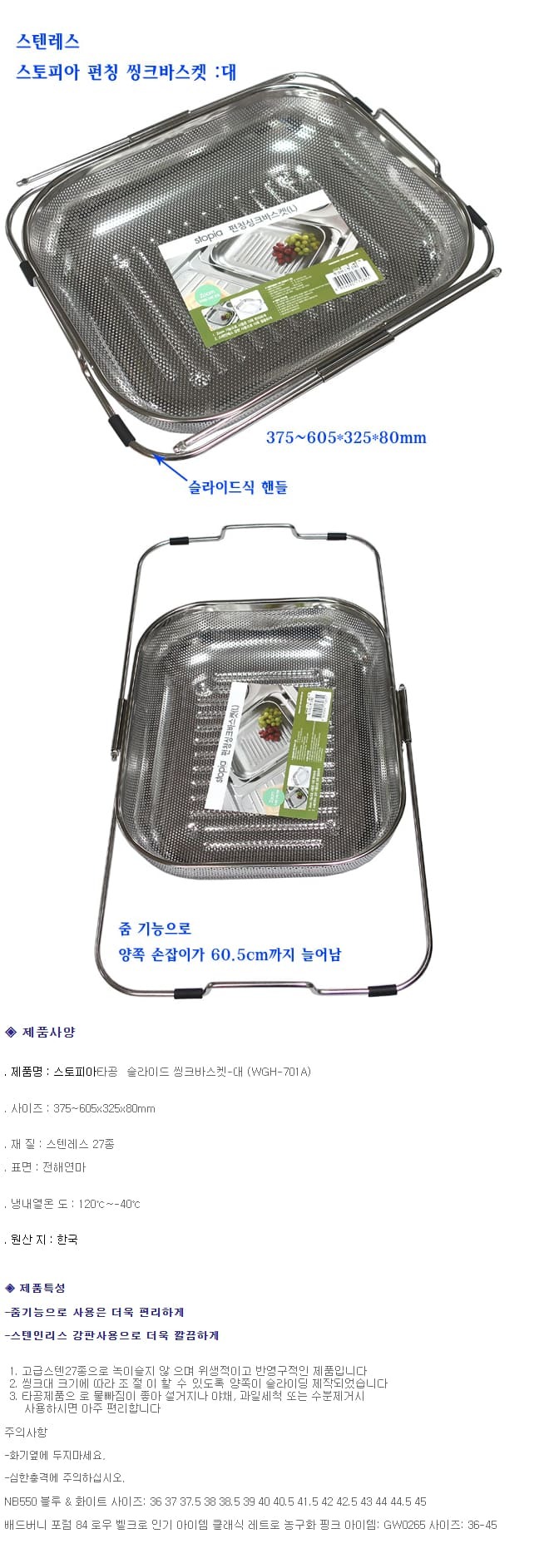 스토피아 싱크대 채반 야채 과일 설거지 채망 타공 바구니 37.5x32.5cm